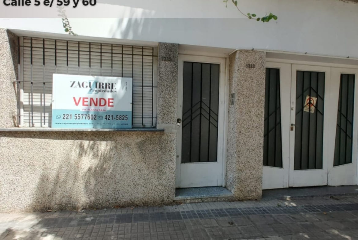 5 e- 59 y 60. VENDO P.H PLANTA BAJA AL FRENTE 2 DORMITORIOS ( UNO DE ELLOS CON PLACARD EMPOTRADO, AMPLIO LIVING-COMEDOR, COCINA COMEDOR CON BARRA DESAYUNADORA,  BAÑO COMPLETO CON BAÑERA Y PATIO, AMPLIO, MUY LUMINOSO, NO PAGA EXPENSAS, MUY BUEN ESTADO!!! A METROS DE AVENIDA 60, ZONA FACULTAD. SIN EXPENSAS, IDEAL INVERSOR!!!