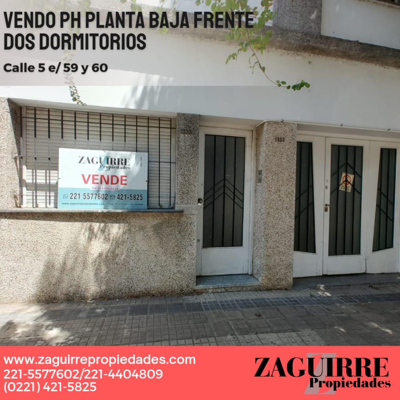 5 e- 59 y 60. VENDO P.H PLANTA BAJA AL FRENTE 2 DORMITORIOS Y PATIO, AMPLIO, NO PAGA EXPENSAS, MUY BUEN ESTADO!!!